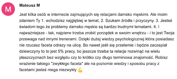 - Uczę świadomych relacji z kobietami - opartych o szacunek, szczerość i uczciwość