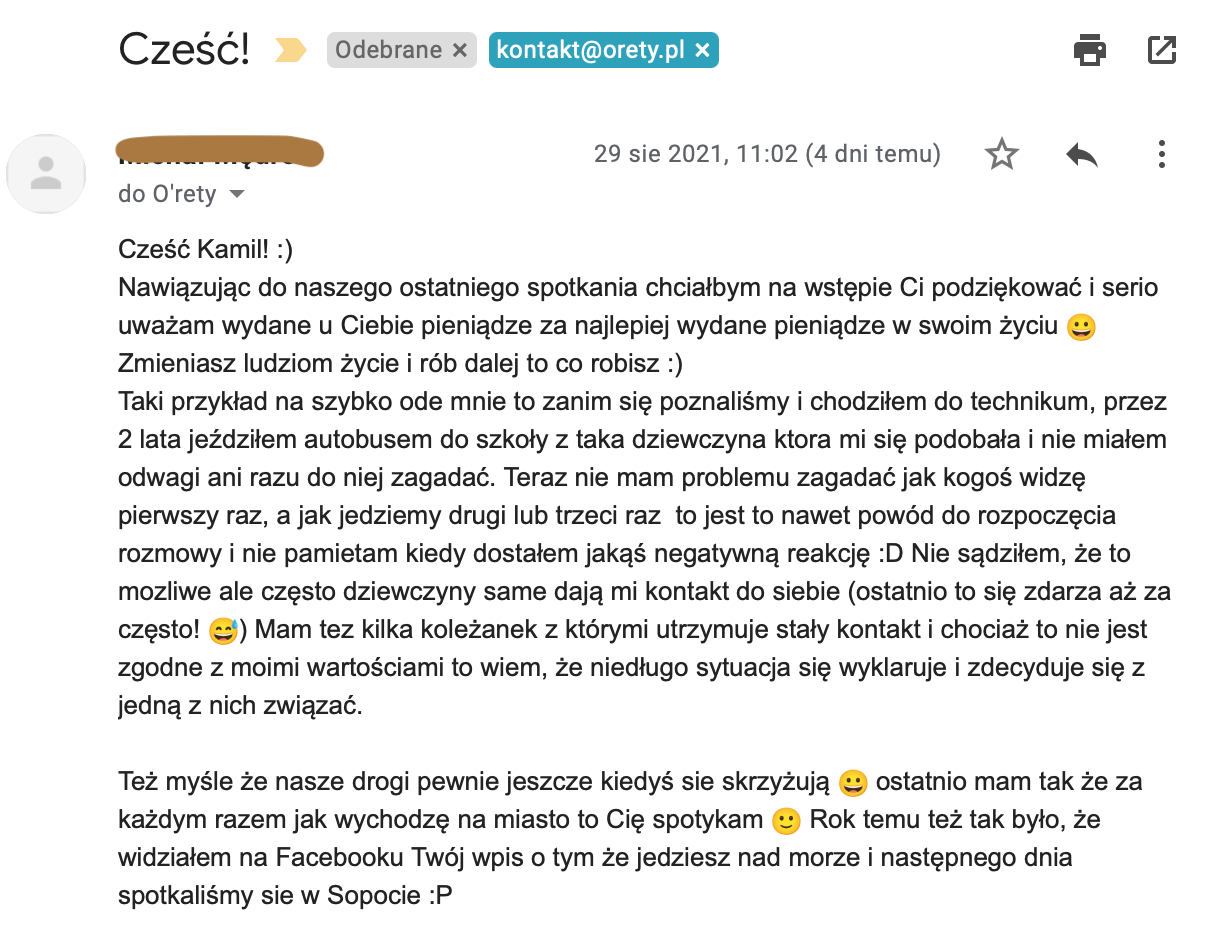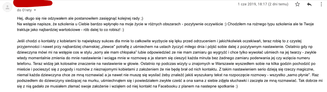 Zrozumiałem, że popularne techniki czy teksty na podryw są nieskuteczne, ponieważ każdy człowiek jest inny, nie biorą pod uwagę intencji oraz odbierają wolność (trzeba się ich uczyć na pamięć).